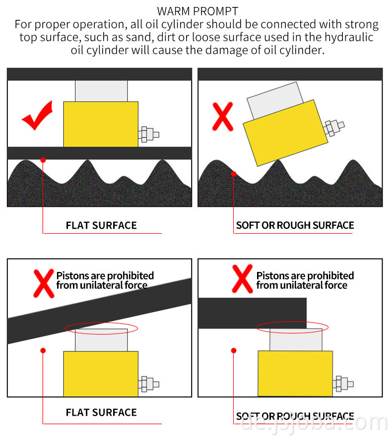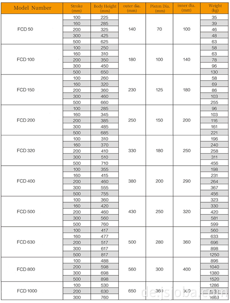 Der Außenringgewinde, der Kolbengewinde und das Grundloch sind einfach zu installieren (für die meisten Modelle). Der Kolbenteil und die innere Seite der Führungskappe sind mit Kupfer geschweißt. Die Oberfläche der Kolbenstange ist mit hartem Chrom plattiert und zieht den Zylinder nicht. Starker Verschleißfestigkeit; lackierte Oberfläche für eine größere Korrosionsbeständigkeit; Doppelter Schauspielhydraulikbuch Abnehmbarer Sattel zum Schutz des Kolbens während des Betriebs; internes Sicherheitsventil zur Verhinderung eines zufälligen Überlasts; Schnelle Kupplungen für alle Modelle: Staubringe reduzieren die Kontamination und verlängern die Lebensdauer der hydraulischen Zylinder.